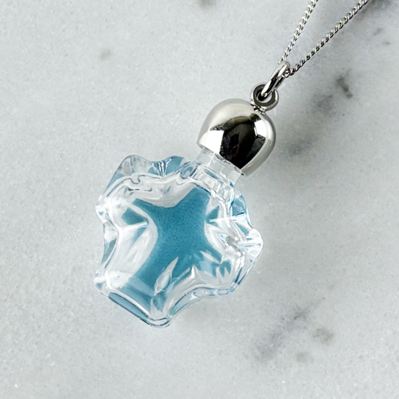 香水やアロマオイルを入れると、胸元であたためられてやさしく香るアロマペンダントです。