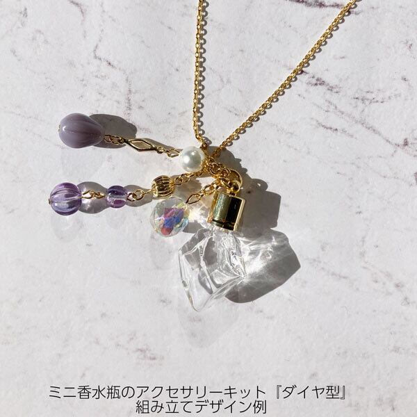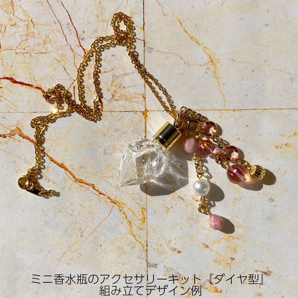 ミニ香水瓶のアクセサリーキット ダイヤ型 ピンク系