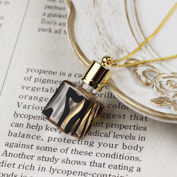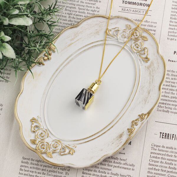 香るペンダント【キューブ・ゼブラxゴールド】|アロマペンダント|香水ペンダント