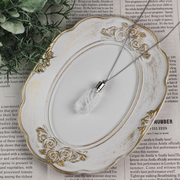 香水やアロマオイルを入れると、胸元であたためられてやさしく香るアロマペンダントです。
