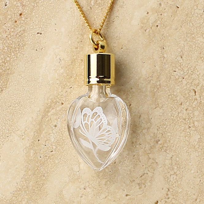 香水やアロマオイルを入れると、胸元であたためられてやさしく香るアロマペンダントです。
